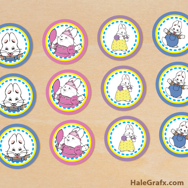 It’s Max and Ruby party time! Here are some free printable Max and Ruby cupcake toppers for your next Max and Ruby themed birthday party. This free printable includes 4 different cupcake toppers, two Max, two Ruby and prints 12 to a sheet.