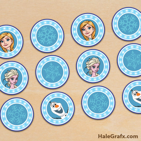 Here are some free printable Frozen cupcake toppers for a Frozen themed birthday party, a Christmas party or a winter get together. This free printable includes 6 different cupcake toppers including 3 different snowflakes, Elsa, Anna and Olfa. These cupcake toppers print 12 to a sheet from a PDF file. and the frozen cupcake toppers are designed to be cut with scissors or a 2 inch craft punch and printable on 8.5 x11 standard letter size paper.
