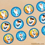 This free printable includes 3 different Frozen cupcake wrappers with a summer them and prints 3 to a sheet. The wrappers all have sunny, hot skies and Olaf in celebration. Their are some icy blues and snow flakes in addition to the him. One of the cupcake wrappers also has the cute little snowmen from Frozen Feaver.