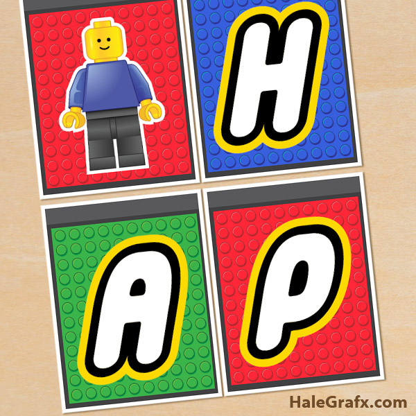 Here is a fun FREE printable LEGO building block birthday banner to add to your LEGO party theme. This free printable includes all letters to spell “HAPPY BIRTHDAY”, one letter per sheet and additional spacer sheets with LEGO minifigures. The Background of the banner looks like LEGO building panels in red, blue and green. The whole banner has 16 sheets and prints on 8.5 x 11 from a multi-page PDF. This Free LEGO banner also includes instructions on how to assemble for your party. When this banner is put together on string it is over 10 feet wide; it will make a great decoration for your LEGO party. You can download your free LEGO birthday banner below.