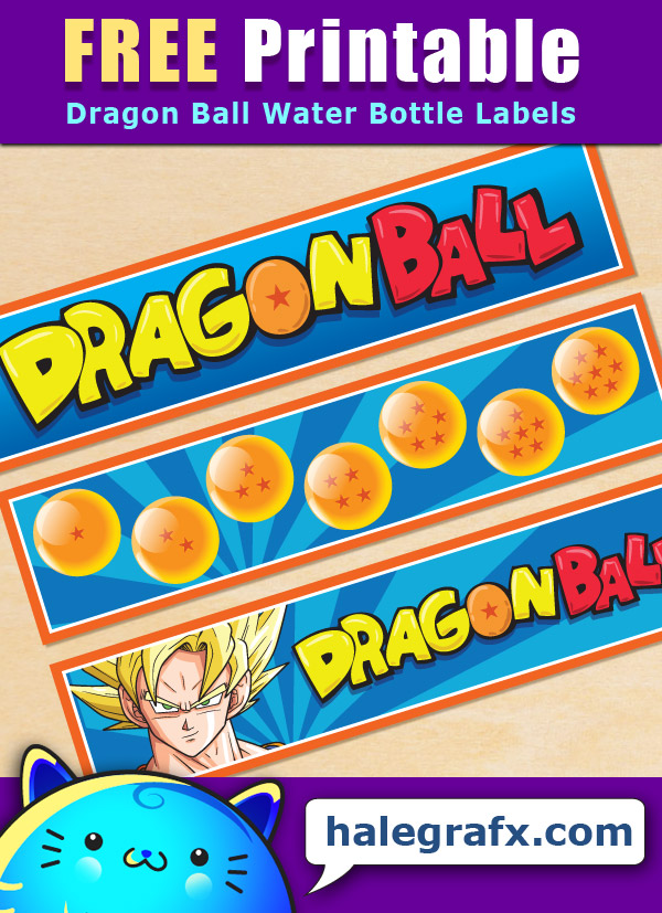 This free Dragon Ball printable prints 3 water bottle labels on 8.5 x 11 standard letter size paper and will fit most regular sized water bottles. There are three different water bottle labels included in this printable.