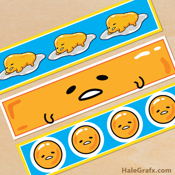 This printable comes with crop marks to make cutting out your Gudetama water bottle labels easier! I recommend using glue or tape to stick your labels on the bottles. You can download your free Gudetama water bottle labels below.