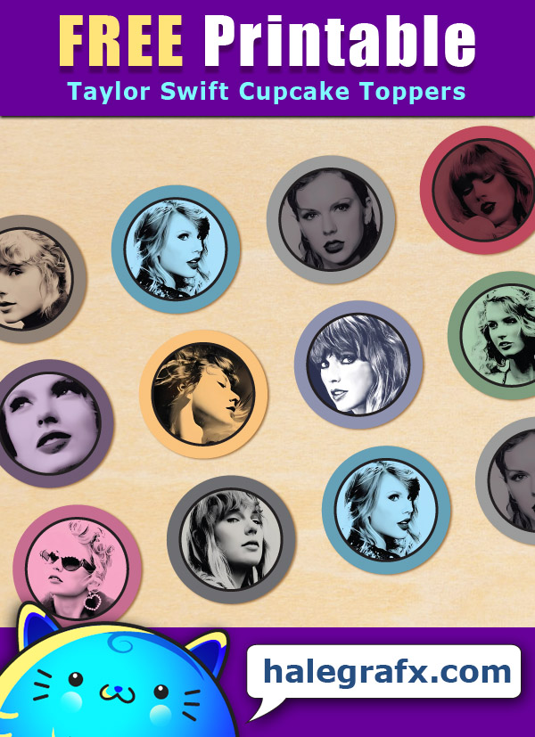 Hey Taylor Swift fans! Here are free printable Taylor Swift cupcake toppers inspired by her Eras Tour for your upcoming get-together, birthday party, or other fun celebration. These cupcake toppers feature familiar images of Taylor Swift from her various albums/Eras, including “Taylor Swift,” “Fearless,” “Speak Now,” “Red,” “1989,” “Reputation,” “Lover,” “folklore,” “evermore,” and “Midnights”. These work perfectly for a Taylor Swift-themed party!