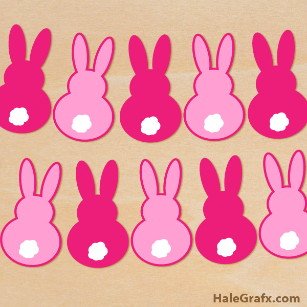 You can assemble these Easter bunny shapes by attaching some string to the back with tape once the glue has dried from putting them together. You can download your free Easter bunny banner SVG pack below.