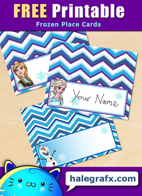 Whether you are having a Christmas party or getting ready for a birthday celebration, these free Printable Frozen place cards will make a great addition to the decorations. They work perfect for labeling seats at a party, labeling food that is out for your guests, attaching to party favor bags and more!