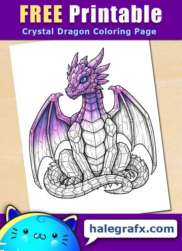 The crystal dragon coloring page would be a great party activity as well if you are planning a dragon party! You can download your free printable crystal dragon coloring page below!